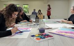 Facilitators offer something to work on or you can explore the art materials available on your own.